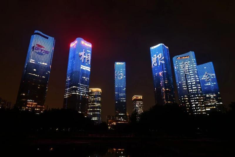 2025年中国国际服务贸易交易会期间,奥林匹克中心区、大望京建筑组群、北京CBD等核心地标上演楼体灯光秀,北京朝阳以科技范十足的光影喜庆服贸会召开。本次灯光秀将于每晚20:00至21:00播放,持续至9月14日。